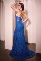 Command attention in this Royal Blue Sequin Corset Gown, a jaw-dropping masterpiece designed to make a statement. Featuring a sheer corset bodice with structured boning and dazzling beadwork throughout, this gown highlights your curves with a sultry fit-and-flare silhouette. The daring high slit adds drama and movement, while the deep royal blue hue radiates elegance and bold sophistication. Whether you're attending prom, a gala, or a red carpet event, this is the dress that promises unforgettable entrances.