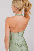 Step into a world of refined elegance with our Long Sheath Dress, a garment that epitomizes sophistication. The halter neckline is fashionably daring yet tastefully classic, leading to a sleek, sleeveless bodice that accentuates your frame.