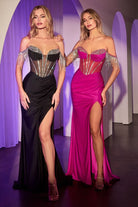 Strapless Sheer Corset Gown with Fringe Sleeves & High Slit – Available in Black & Fuchsia KV1123