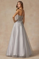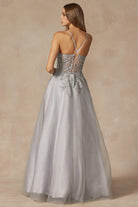 A stunning Leaf Lace Corset Bodice Straight Across A-Line Long Prom Dress that is crafted from 100% Polyester. With multiple color options such as Burgundy, Sage Green, and Silver, you're sure to find the perfect dress for your special night.