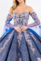 Sweethearted Ruffle Tail Quinceanera Dress Detached Mesh Sleeve - Mask Not Included GLGL1912