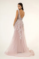V-Neck Floral Embroidery Embellished Mesh A-Line Dress Sheer Back - Mask Not Included GLGL1920