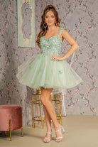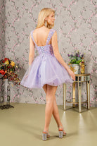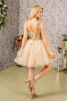 Butterfly Applique Sequin Mesh Babydoll Dress Sheer Straps