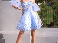 Breathe in elegance with this Mint Green Floral Off-Shoulder Mini Dress. Designed with a sheer structured corset, delicate 3D floral appliqués, and airy tulle puff sleeves, this short A-line silhouette is perfect for garden parties, bridal showers, or romantic date nights. The soft mint green tone adds a refreshing pop to your special occasion wardrobe.
