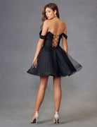 Illusion Sweetheart Off-Shoulder Cocktail Dress with Open Criss-Cross Back | Long & Short Homecoming Dress