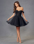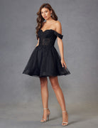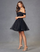 Make a stunning statement at your next homecoming or cocktail event with this beautiful illusion sweetheart dress. Featuring an off-shoulder design and charming cap sleeves, this dress combines elegance with modern style. The open criss-cross back adds a unique touch, ensuring all eyes are on you. Available in both long and short lengths, this versatile gown is perfect for dancing the night away or enjoying a memorable evening. Whether you choose the flowing long dress or the playful short style, you'll radiate confidence and grace at any special occasion.