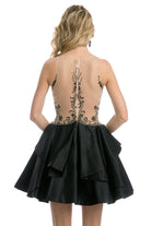 Halter Sheer Bodice Embellished Bodice Short Cocktail Dress