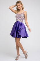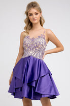 Expertly designed with 100% polyester, this stunning Halter Sheer Bodice Embellished Bodice Short Cocktail Dress comes in three striking colors: black, fuchsia, and purple. Its short length adds a touch of fun and modernity, while the halter neckline and sleeveless design enhance your silhouette.