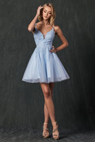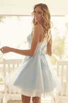 Babydoll Glitter Embroidered Lace Short Homecoming Dress