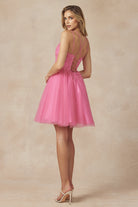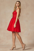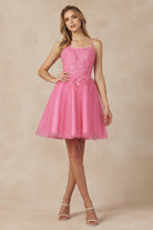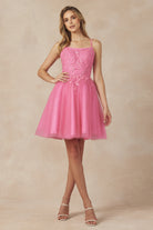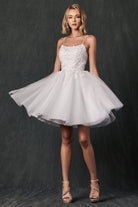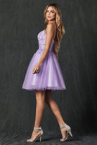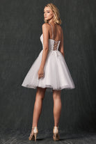 Floral Applique Embellished Stones Babydoll Short Homecoming Dress