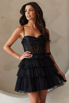 Made with 100% polyester, this Ruffle Skirt Sheer Bodice Embellished Jewel Short Cocktail Dress is perfect for any occasion. The elegant cowl neckline, open criss cross back, and spaghetti straps add a touch of glamour, while the lace-up design is both fashionable and functional.