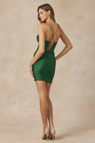 V-Neck Satin Spaghetti Straps Open Back Short Cocktail Dress