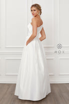 This beautiful full-length A-line dress provides an unforgettable evening look. Crafted with 100% polyester, its soft, vibrant satin fabric complements the tailored silhouette and one-shoulder neckline, hinting at just enough skin for a tasteful touch of allure. Boasting a classic pleated layer, center zipper closure, and a dreamy train, this gown is an elegant embodiment of tradition and modernity. Adorned with exquisite details, this exquisite gown will have heads turning and eyes shining.
