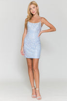 Stay on trend with this Embroidered Lace Short Dress that comes in a variety of fun colors like Baby Blue, Blush, and Yellow. The timeless Straight Across neckline will have you looking chic and stylish. But the real standout is the Open Criss Cross Back, adorned with either Sleeveless or Spaghetti Straps, ensuring you'll make a statement wherever you go.