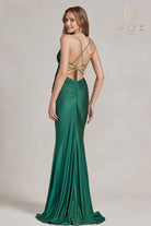 The beautiful hues of Emerald Green, Navy Blue, and Red will enhance your look in this Long Prom Dress boasting a stylish Square Neck and open Criss Cross Back, with the choice of Sleeveless or Spaghetti Straps to complete the look.