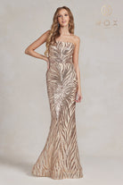 Mermaid Embroidered Sequins One Shoulder Long Evening Dress NXR1204