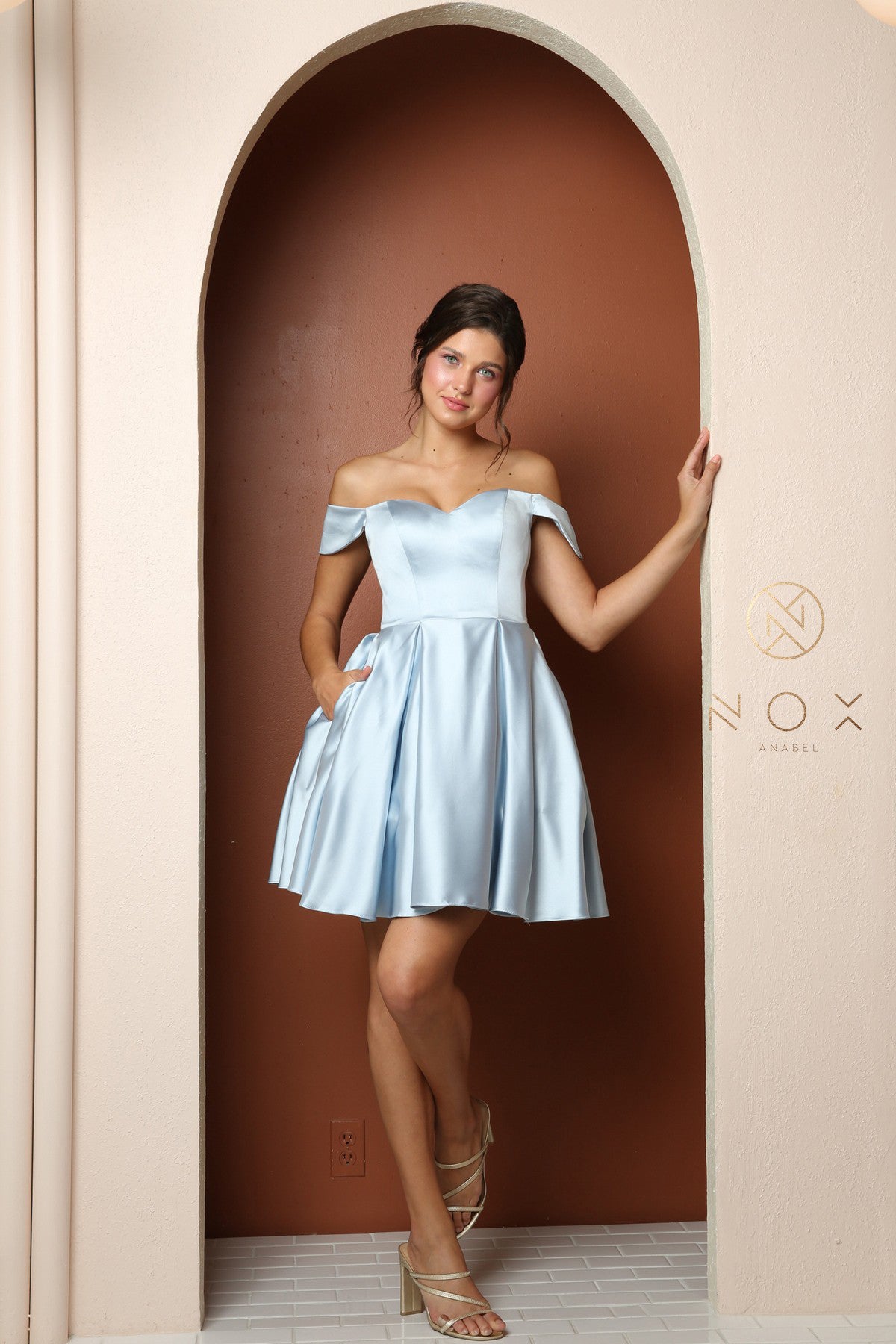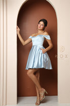 Don a plethora of stunning shades ranging from Baby Pink to Light Blue and Emerald to White in this sophisticated short dress. Boasting a Sweetheart neckline, open back, and either Sleeveless, strappy, or Off Shoulder sleeves, this A-Line Satin Dress is a vision of tasteful elegance.
