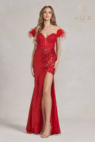 Off Shoulder Embellished Feather Illusion Sweetheart Long Prom Dress NXS1229
