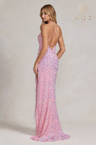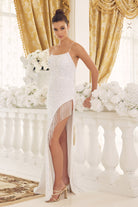 Embroidered Lace Spaghetti Straps Deep Side Slit Long Evening Dress NXT1209