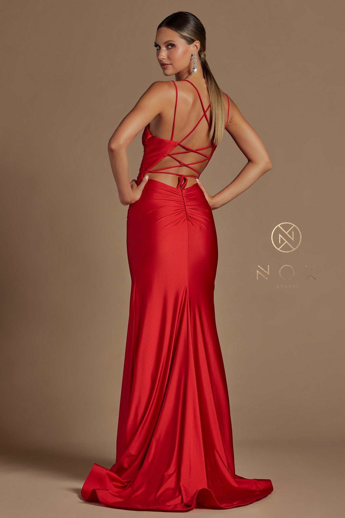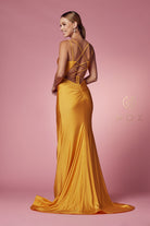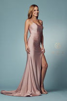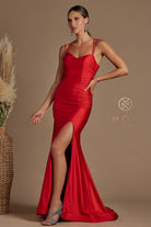 A sublime scoop neck framed by dainty spaghetti straps interweaves elegance and comfort in this sleek SMC gown. Delicately presenting the face, an artfully wide neckline offers a luxurious and effortless aesthetic with a delicate scooped detail. Perched atop side slit, this majestic mermaid-style dress culminates in a full length and is sophisticatedly secured with crisscross straps in the back. Crafted from lightweight 100% polyester and skilfully tailored with pleats front and back, this beautiful gown is a must-have piece for a memorable evening.
