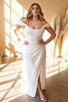 Elegance and playfulness coalesce in the 7484 dress, an exquisite creation that celebrates the tender enchantment of nuptials. Its corset bodice and pleated skirt flaunt a personalized fit, adjustable by a corset tie at the back, while the detachable off-the-shoulder straps allow for effortless allure.