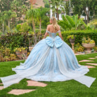 Detachable off shoulder straps v neckline ball gown train with detachable bow tie able cape GLGL3707