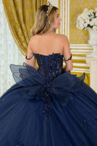 Embellished thin straps v neckline glitter underlayer train ball gown with detachable butterfly bow GLGL3712
