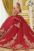 Off shoulder embellished v neckline corset bodice train ball gown with detachable bow GLGL3673