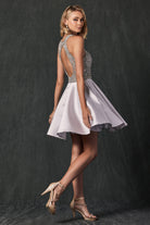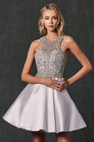 Beaded Bodice Halter Short Cocktail & Homecoming Dress