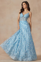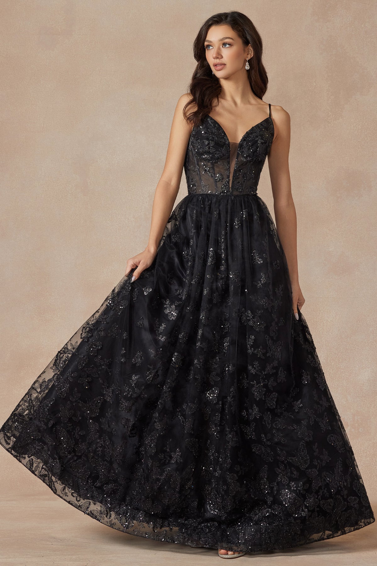 Butterfly Glitter Embroidered Corset Top Long Prom Dress