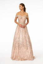 Embroidered Bodice Sequin and Glitter Embellished A-Line Dress GLGL2941