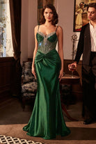 Ice Blue Satin Corset Mermaid Gown with Crystal Embellishments