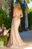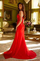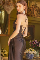 The smooth satin fabric drapes effortlessly, while the high front slit adds a bold touch to this glamorous silhouette. Whether you're walking into a formal gala, prom night, red carpet event, or black-tie wedding, this gown promises confidence and drama with every step.