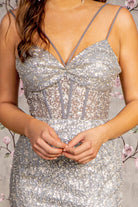 FORMAL SLEEVELESS MERMAID GOWN W/ SHEER BODICE & DETACHABLE SIDE WAIST DRAPE GLGL3273
