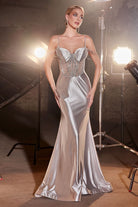 Step out in style with this modern, sexy satin fitted dress. Crafted with an intricate, fitted silhouette, this dress will hug your curves to emphasize your figure. The embellished sheer boned bodice gives off a glamorous air, while the thin straps on the shoulders offer a hint of sexiness. To add even more sophistication and intrigue, the dress is draped with rhinestone chains across the bust and shoulders. Whether you’re headed to a special event or simply want to look on-trend, this elegant yet modern satin fitted dress is sure to make a bold statement that will turn heads.