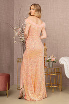 Sequin Off Shoulder Mesh Mermaid Dress Feather on Neckline GLGL3164