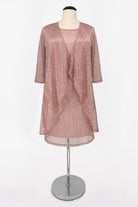 Step into subtle sophistication with this Blue Metallic Plus Size Layered Jacket Dress, designed for women who love polished elegance with a hint of sparkle. The dress features a built-in layered jacket with a flattering draped front, giving you modest coverage and stylish flair in one piece. Its knee-length cut and lightweight metallic shimmer fabric make it ideal for spring and summer weddings, cocktail receptions, holiday parties, or church gatherings. Comfortable, chic, and easy to wear β this is your go-to special occasion dress.
