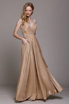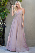 A-Line Glitter Side Zip V-Neck Long Bridesmaid & Prom Dress
