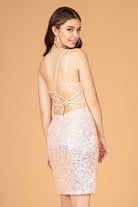 Asymmetric Sequin Short Bodycon Dress with Lace-up Back GLGS3093