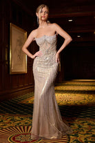 Strapless Sheer Corset Gown with Rhinestone Beading & Fitted Train CD756