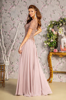Bead Embroidery Sheer Short Sleeves A-line Mesh Long Dress GLGL3492