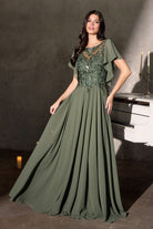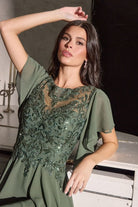 A-Line Illusion Neckline With Flutter Sleeves And Embellished Bodice Be - CDCL09