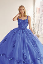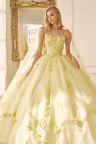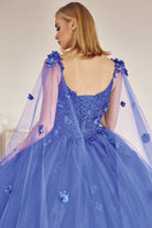 Long tulle cape with 3D flowers applique Quinceanera ballgown.Fabric content : 100% Polyester