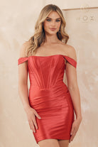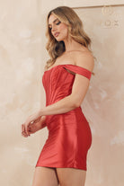 Short Satin DressFabric Content:100% POLYESTER This gorgeous satin dress features a push-up bustier corset that lifts and supports the bust, draws in the waist, and flattens the tummy. The off-shoulder straps add a touch of elegance and sophistication, while the zipper on the back ensures a perfect fit.
