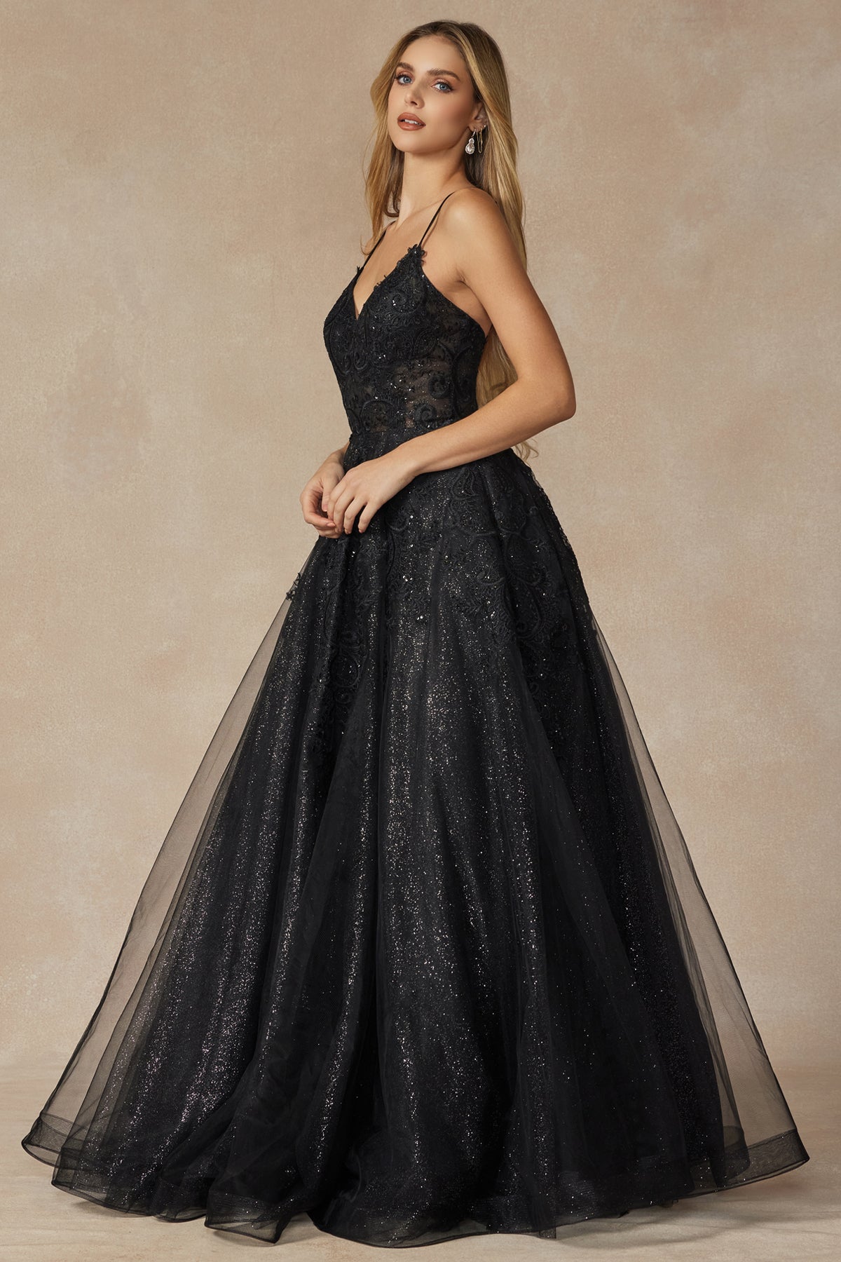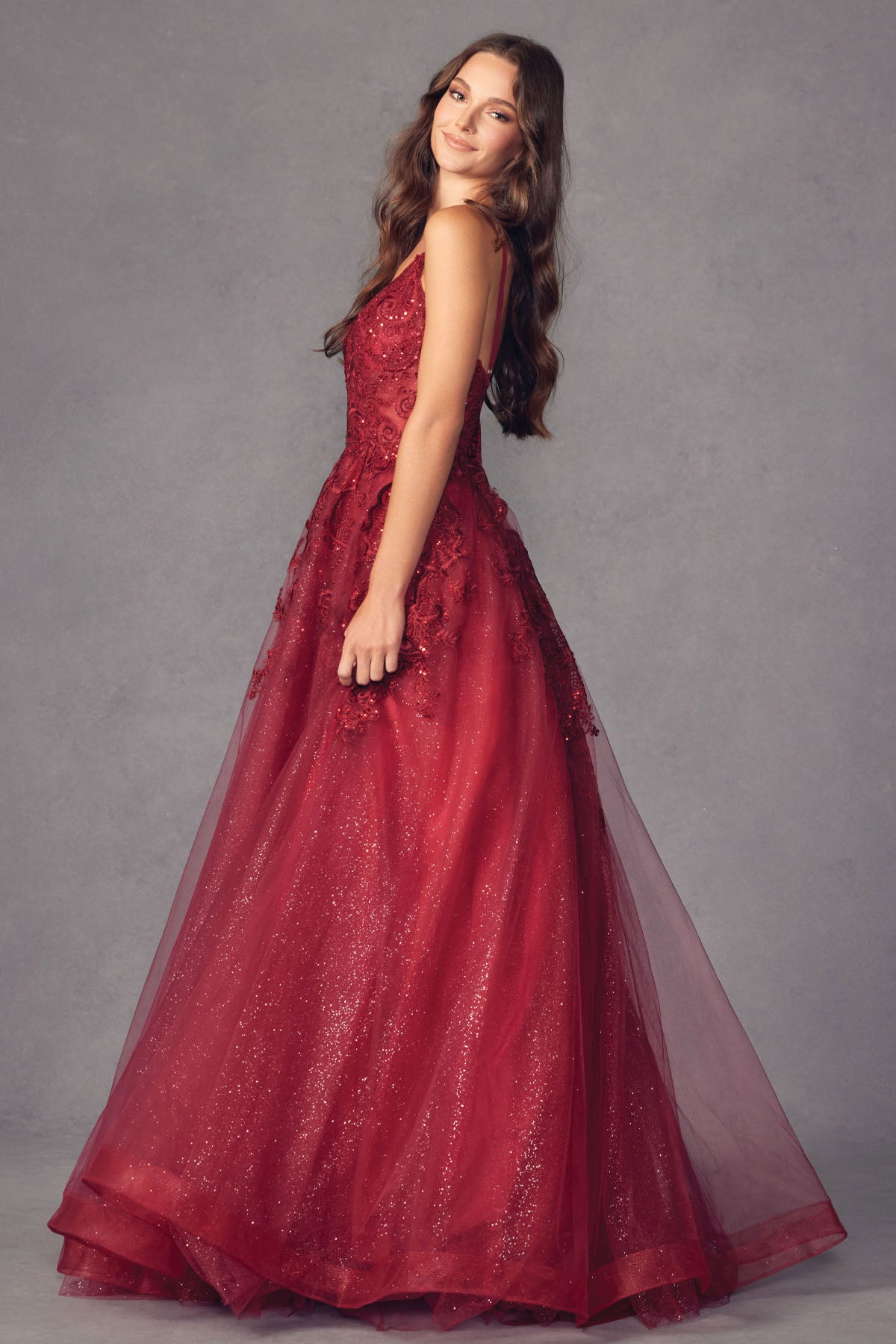 Embroidered bodice with open back Ball gown.Fabric content : 100% Polyester