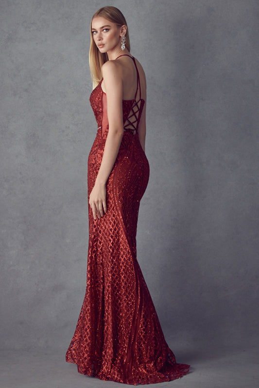 Glitter fitted criss cross open back evening prom dress.