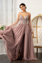 Detachable Mesh Sleeve V-Neck Chiffon Prom Dress GLGL3005