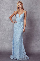 Embroidered Sequin Illusion V-Neck Spaghetti Straps Long Prom Dress