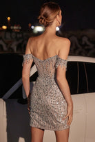 Off-Shoulder Sequin Mini Dress with Fringe Sleeves & Sweetheart Neckline CC461