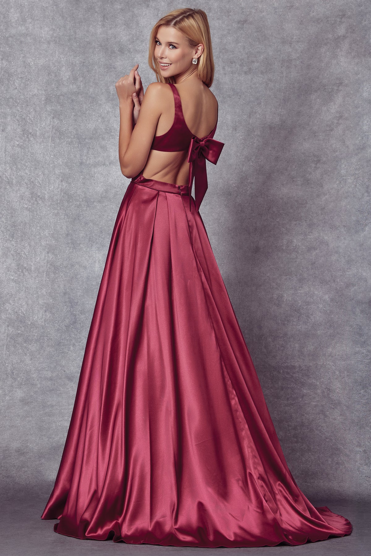 Grace meets glam in this sleek satin A-line gown, featuring a structured plunging neckline and hidden side pockets for that perfect balance of elegance and function. The full-length skirt flows effortlessly from a defined waist, creating a timeless silhouette that flatters all body types. Whether you're heading to prom, a black-tie wedding, or a formal gala, this dress makes a sophisticated statement.
